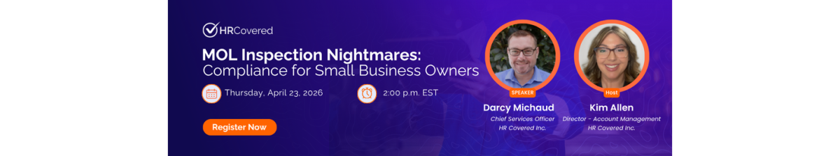 For a small business or nonprofit, a Ministry of Labour (MoL) inspection isn’t just a formality—it’s a high-stakes event. A single missing poster, an outdated health and safety policy, or an incorrectly worded contract can trigger thousands in fines or an immediate stop-work order. Don’t wait for the knock on the door. Join us for a high-impact session designed to "inspector-proof" your organization. We’re pulling back the curtain on the MoL playbook to show you exactly what they look for and how to stay off their radar. Featuring: Darcy Michaud As the Chief Services Officer at HR Covered, Darcy Michaud has spent decades navigating the complexities of both the public and private sectors. Known in the industry as the "Compliance Whisperer," Darcy specializes in turning high-stress legal nightmares into manageable, airtight business strategies. Darcy’s sessions are famous for their unscripted, interactive Q&A. This is your chance to put a subject matter expert in the hot seat. Bring your toughest, most specific contract questions and get the practical, expert guidance you need to protect your organization immediately. Darcy will be joined by Kim Allen, Director of Account Management at HR Covered Inc., who will serve as the host. Together, they’ll lead a live Q&A at the end of the presentation—offering clear, practical guidance on your most pressing HR challenges. The Agenda: What We’re Covering ✔️ The Red Flags: Why they chose your business and how to stay off their radar. ✔️ The "Golden Hour": The first 60 minutes of an inspection can save or sink you. ✔️ Nightmare Files: Real-life stories of small businesses that lost it all and how you can avoid their mistakes. ✔️ Live "Open Mic" with Darcy: No scripts and no fluff. Just direct answers to your most pressing compliance fears. Can’t attend live? Register and we’ll send you the full recording.